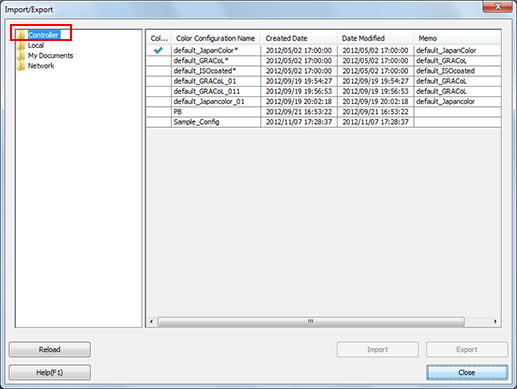 • When a folder other than [Controller] is selected on the tree view, [Import] is not available.