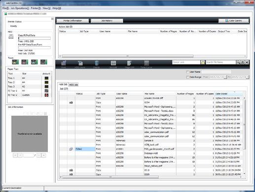 [HDD Job] | Lists the jobs in the HDD. For details, refer to Operation of HDD Job. |