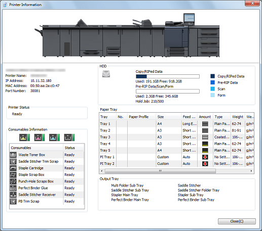 You can display the [Printer Information] screen by clicking the [Printer Information] in the [Job Centro] screen.