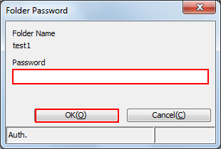 If selecting the folder where password protection is set, enter the password in the following screen to be displayed, and click [OK].