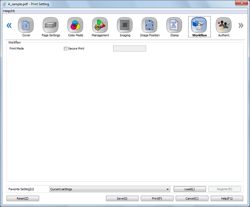 To perform the secure print, check this item and set the password. The password is required to be re-entered. Enter the password within 8 one-byte characters.