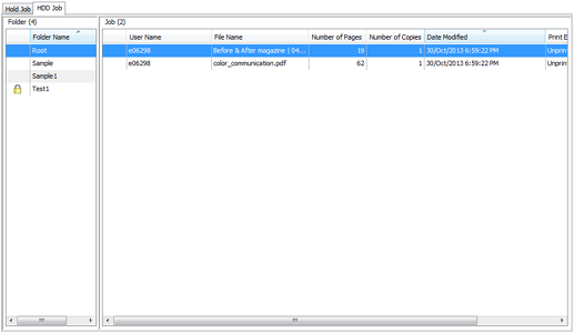 [Print End Date] | Displays the print end date of the HDD job. The jobs saved on the HDD are displayed as "Unprinted." The jobs which can be edited only in the touch panel of the main body are displayed blank. |