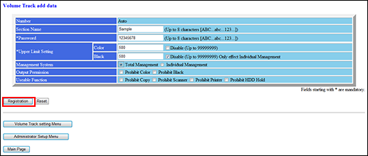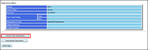 To cancel the new registration and return to the previous page, click on [Back] of the web browser, or press [Volume Track setting Menu] in the window.