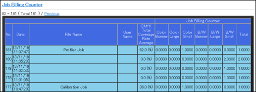 You can also check the job billing counter by clicking [JOB LIST] - [Output History] on the machine.