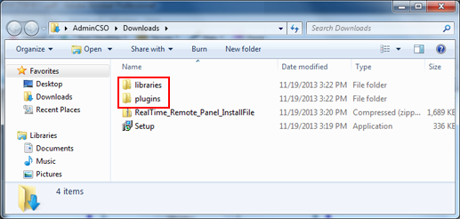 Be sure to store the two folders extracted from RealTime_Remote_Panel_InstallFile.zip ([libraries] and [plugins]) and the installer (Setup.exe) in the same folder. Otherwise, an error message is displayed when the installer is launched.