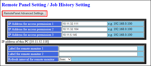 Click [Remote Panel Advanced Settings] in the upper left of the screen.