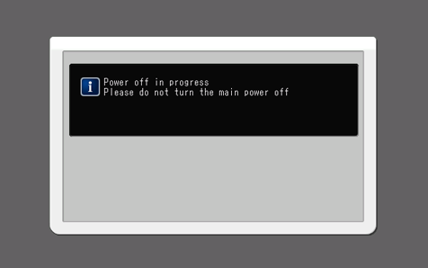 When the panel is locked or the connection warning/connection refused screen is displayed and the sub power switch of the main body is turned off, the touch panel of the main body displays the screen to notify you the shut-off process is in progress.