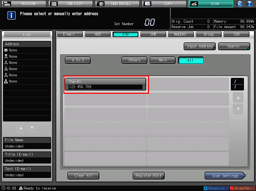 To select a registered address, refer to "When an FTP Server is Already Registered."