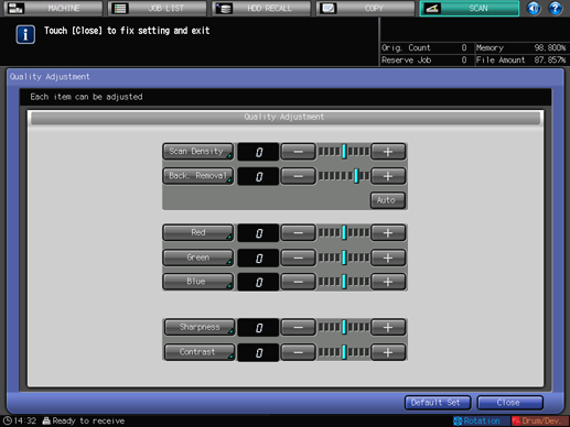Adjust the density, tone and contrast of the entire original, background density and shapes of letters or pictures.