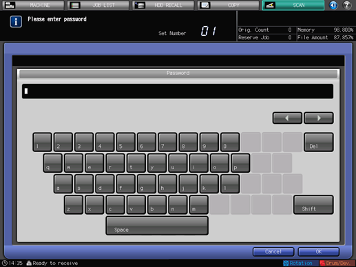 Selecting [Encrypt] allows you to set a password on the [Password] screen.