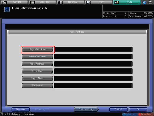 The register name is automatically input in [Reference Name]. If you want to change the reference name, press [Reference Name] and input the reference name again.