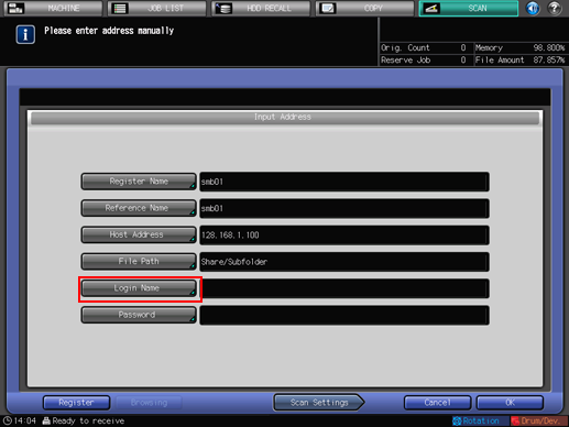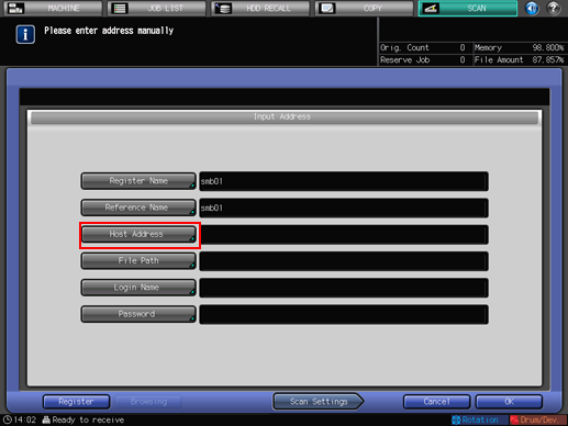 To select a registered address, refer to "When an SMB Server is Already Registered."