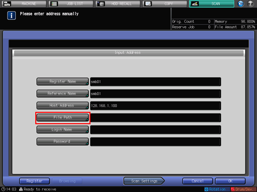 To manually enter a destination, refer to "When an SMB Server is Not Registered."