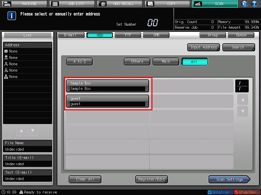 If you have not registered a destination user box to save, select the default [guest] box or register a new box. For details, refer to "When a Box is Not Registered."