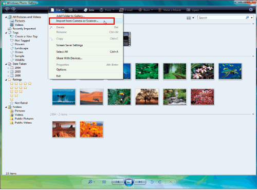 On the [File] menu, click [Import from Camera or Scanner].