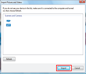 From the list of [Scanners and Cameras], select this machine, and then click [Import].