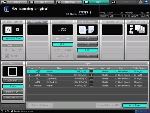 Memory indicator at the upper right corner of the [COPY] screen allows you to check the remaining memory.