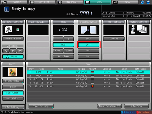 3. Select [2->1] copy mode.