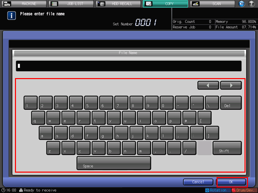 The entry of [File Name] can be omitted. In this case, the machine assigns the last 4 digits of the job ID to be created automatically.