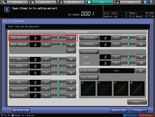 Make an adjustment for Copy Density on the [Copy Density] screen.