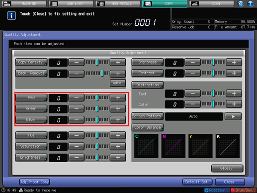 Press [Close] on the [Quality Adjustment] screen.