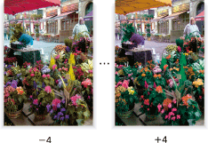 Press [+] to specify a positive adjustment level to make red closer to yellow, green closer to cyan, and blue closer to magenta.