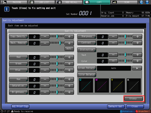 4. Press [Glossy] on the [Quality Adjustment] screen.
