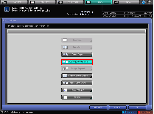 Press [OK] on the [Application] screen to return to the [COPY] screen.