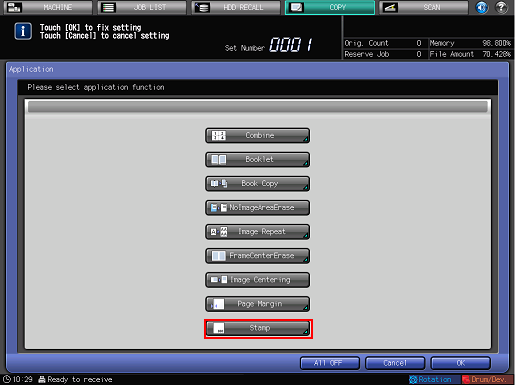 Press [Stamp] on the [Application] screen.
