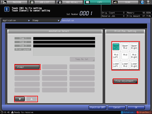 Select one of the 9 printing positions provided under [Print Pos. Setting]. When fine adjustment is desired, press [Fine Adjustment].