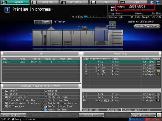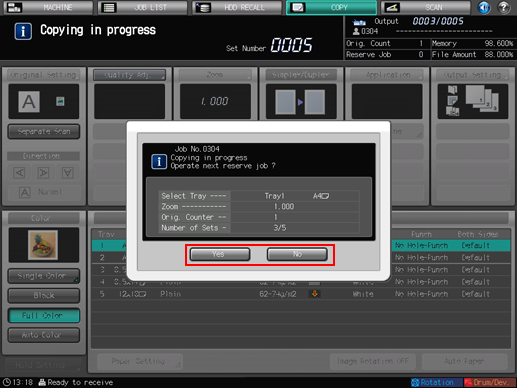 When scanning the original for the job is started, a dialog is displayed on the [COPY] screen.