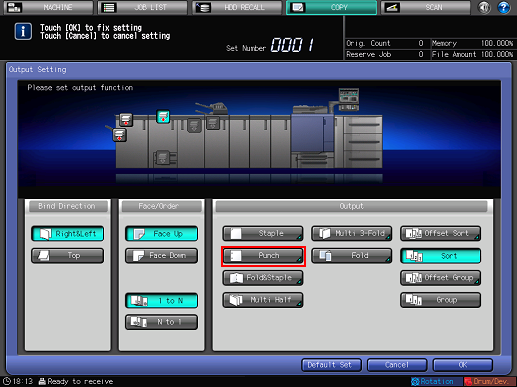 Press [OK] on the [Output Setting] screen to return to the [COPY] screen.