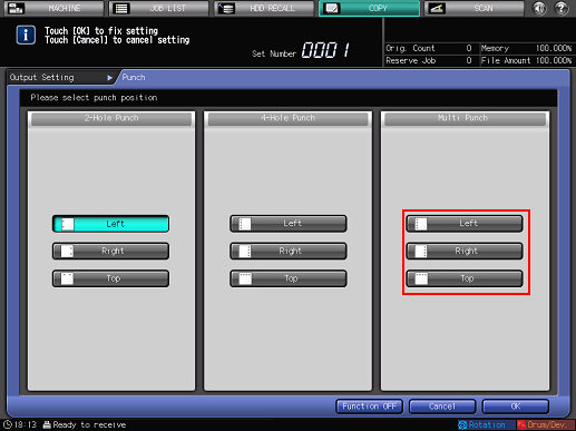 ) and punch position. To select the punch hole type, change the die set to the desired one.