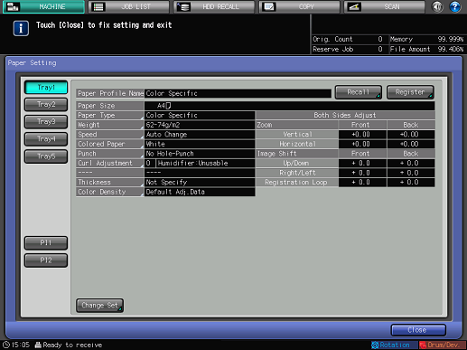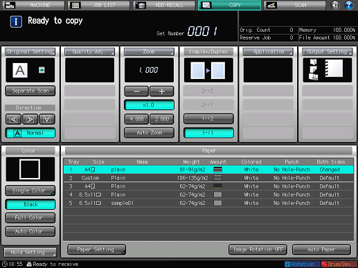 If temporary change of the paper setting is desired, change the setting from the [Paper Setting] screen. For details, refer to Paper Setting.