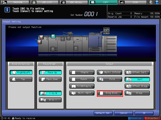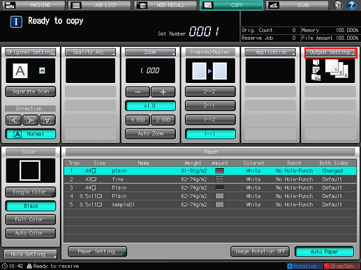 Press [OK] on the [Output Setting] screen to return to the [COPY] screen.