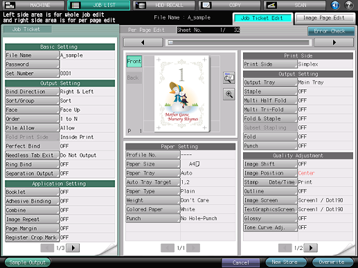 -> For details about the [Job Ticket Edit] screen, refer to Job Ticket Edit Screen.