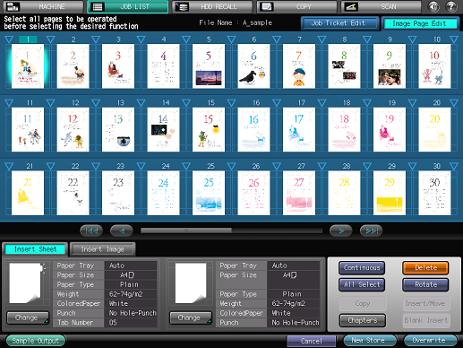 Image Page Edit | Provides preview images of the page sequence. This function also allows you to insert, move, or copy the images or sheets (covers). |