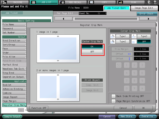 This section describes the Register Crop Mark function to be specified on the [Job Ticket Edit] screen.