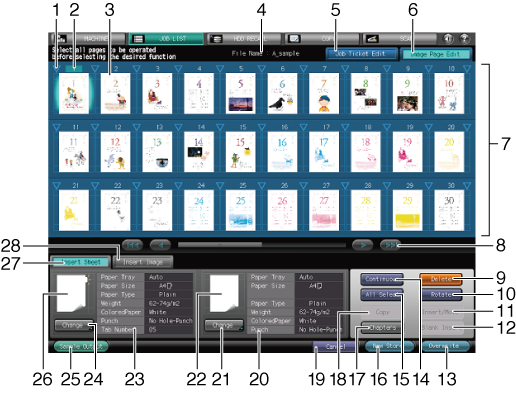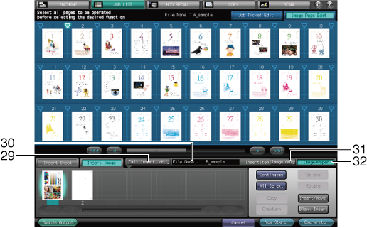 29 | [Call Insert Job] | Pressed to select the image data to be inserted from the image file of the hold job. |