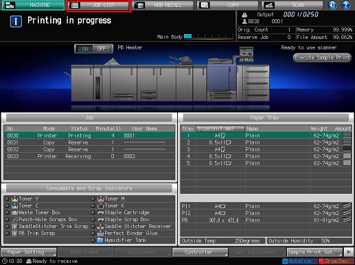 Press the [JOB LIST] tab on the screen to display the [JOB LIST] screen.