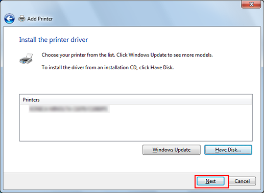 For the SMB connection, click [Next], and then click [OK] in the [Connect to Printer] page that appears.