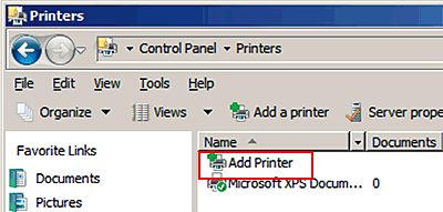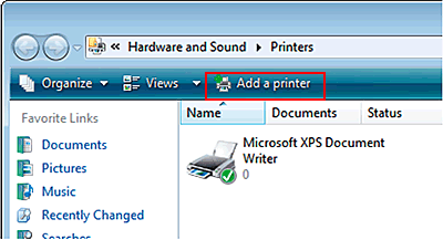 In Windows Vista/Server 2008, click [Printers] under [Control Panel] - [Hardware and Sound]. When [Control Panel] is displayed in Classic View, double-click [Printers].