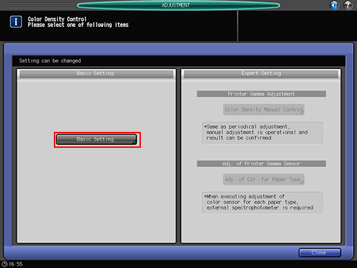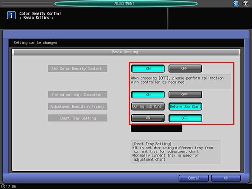 Basic Setting | You can enables the color density control and set the execution timing, etc.