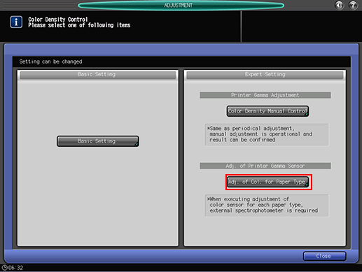 Press the [Adj. of Col. for Paper Type] of [Expert Setting].