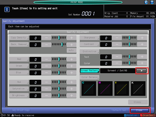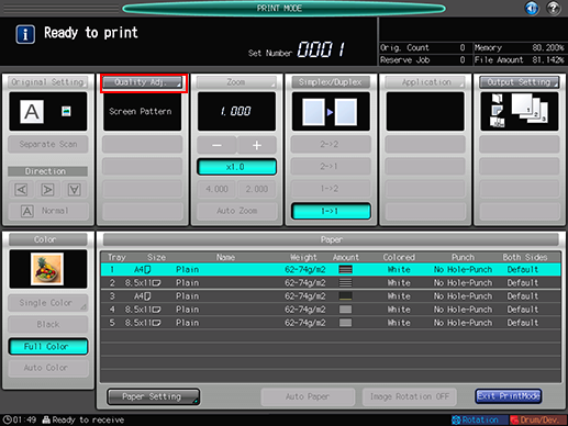 On the [PRINT MODE] screen, press [Quality Adj.].