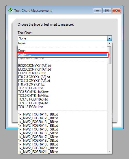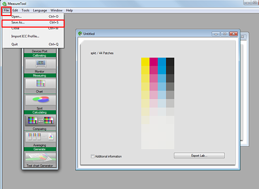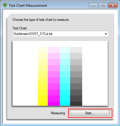 To measure the chart, use the X-rite Measure tool. Install the tool in advance.