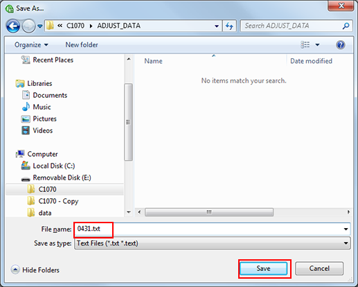 USB Memory | Connect the USB memory to the computer. •For bizhub PRESS C1070: Create a folder, "\C1070\ADJUST _DATA," in the root (immediately below) of the USB memory, and specify the place as the destination to save. |