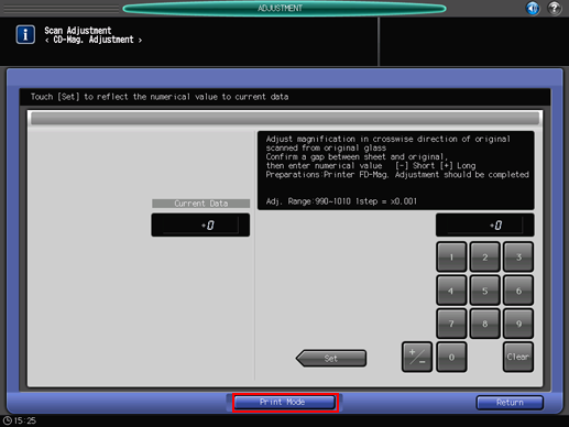 Press [Machine Adjustment], [Scan Adjustment], and [CD-Mag. Adjustment] in sequence.
