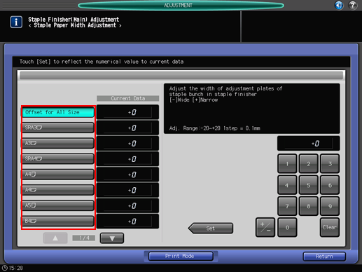 Press [Exit PrintMode] to return to the [Staple Paper Width Adj.] screen.