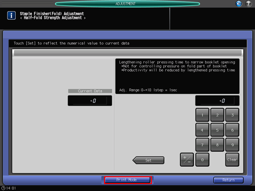 Press [Exit PrintMode] to return to the [Half-Fold Strength Adjustment] screen.